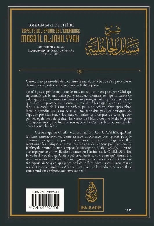 Aspects de l’Époque de l’Ignorance (Mashil al-Jahiliyyah) – Cheikh Mohammed Ibn ’Abd Al-Wahhab – Commentaire Sheikh Dr Salih al-Fawzân – Éditions Ibn Badis